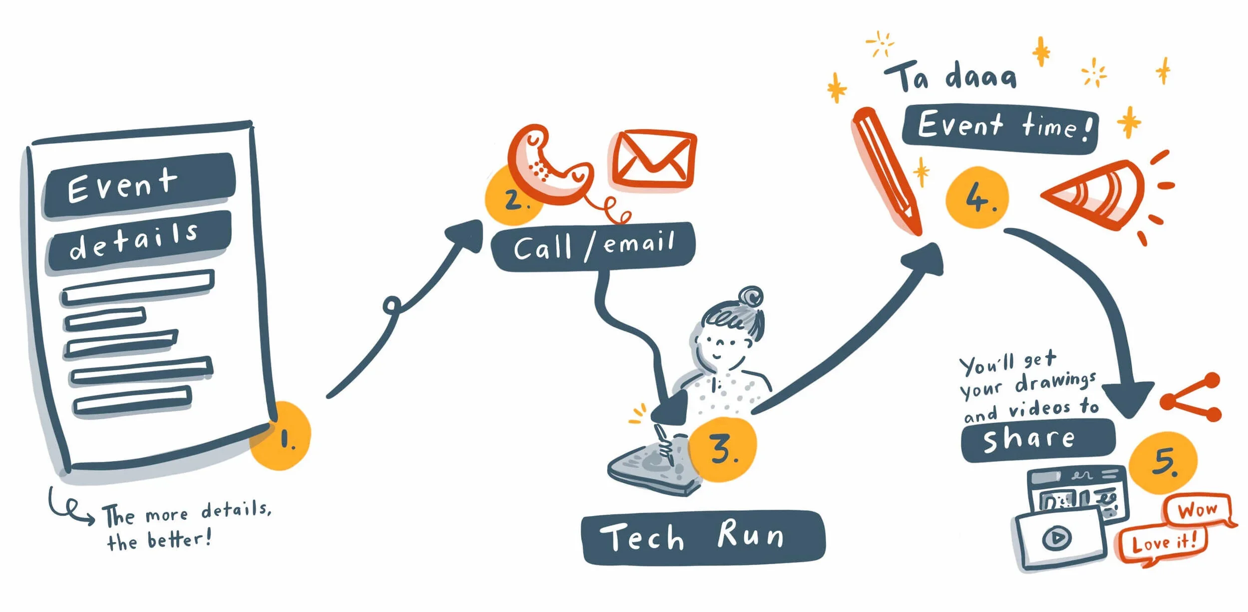 Hiring a live illustrator can feel nerve-wracking because it happens live.